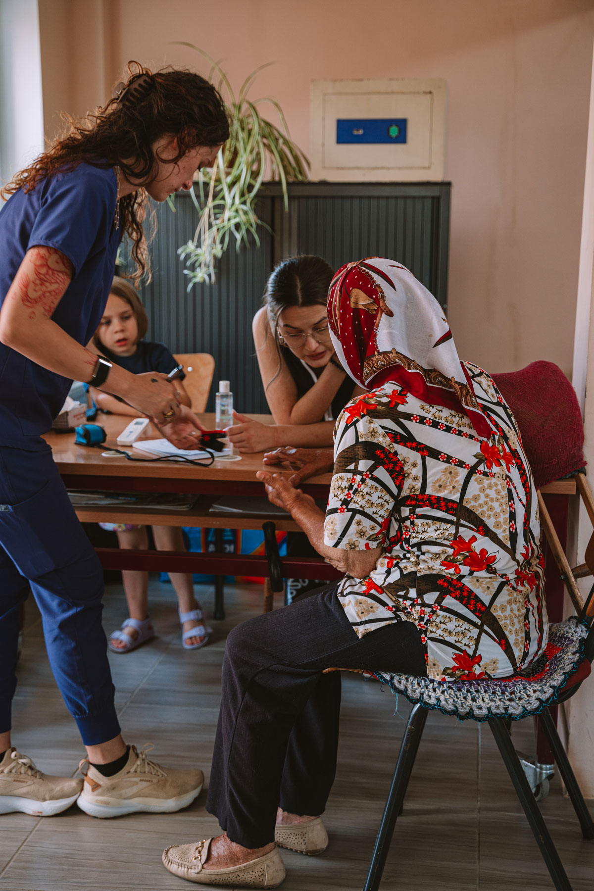 Local volunteers and team members welcome patients, gather basic information, and help guide them through the clinic process.